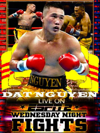 I have just been informed that Dat “Dat be Dat” Nguyen will be fighting in the co-feature on ESPN’s Wednesday Night Fights, in Boston, on July 18. Nguyen, who is undefeated at 10-0, 6 KO’s, will be fighting in support of the Mike Oliver vs. Cruz Carbajal main event at The Park Plaza’s Castle.