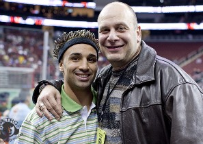 Paulie and Promoter Lou DiBellaThe Ironmen and their staff were very hospitable to both Team Malignaggi and the BrickcityBoxing team. Ironmen general manager Tony Novo said. “We are very excited about the opportunity to have Paulie come serve as our honorary captain this Friday,” “Anytime you can have a world champion come out and get a game started, you know it will be a special evening.”