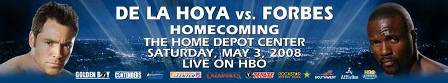 OSCAR DE LA HOYA TO WEAR MLS’ HOUSTON DYMANO “FOREVER ORANGE” COLOR ON ROBE AND TRUNKS FOR “HOMECOMING” BOUT AGAINST STEVE FORBES SATURDAY NIGHT Posted by on April 29, 2008 in Announcements [A] | Leave a response LOS ANGELES (April 28, 2008) Tweet
