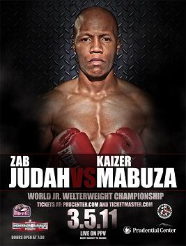 Zab Judah vs. Kaizer Mabuza March 5th at Prudential Center. Live of PPV $29.95 Posted by on February 16, 2011 in Announcements [A] | Leave a response Zab Judah vs. Kaizer Mabuza Commercial March 5th Tweet