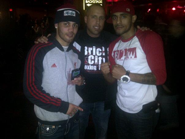 Brothers, Michael Perez, Danny Serratelli and Alex Perez after his KO VictoryNew York, NY – (1/21/2011) – Earlier tonight before a sell out crowd at New York City’s famed Roseland Ballroom, DiBella Entertainment kicked off the 2012 season of its “Broadway Boxing” series with an exciting nine-bout card. Headlining the card was Brooklyn’s undefeated NABF light welterweight champion, Gabriel “Tito” Bracero defending his title against former two-time world champion, DeMarcus “Chop Chop” Corley.